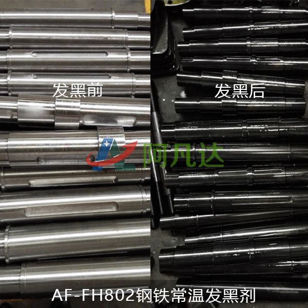 1、配槽液:AF-FH802常温钢铁发黑剂为浓缩液加2-4倍清洁水为工作液,工作液的PH值保持为2~2.5